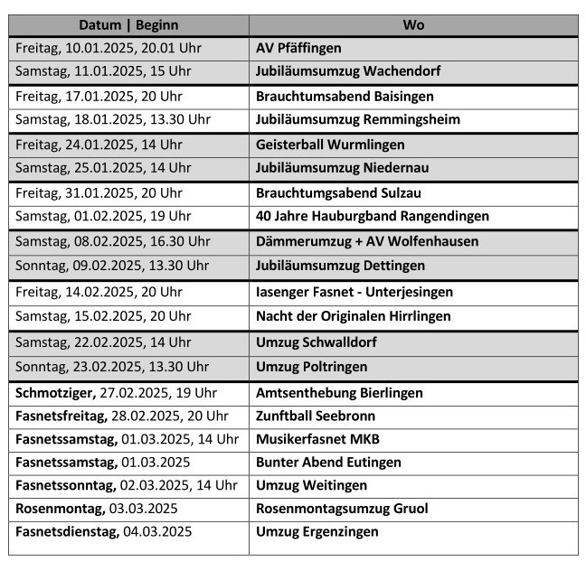 Fasnetstermine 2025
